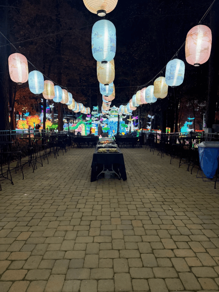 Lanterns are designed exclusively for this event with materials shipped from China into the North Carolina Ports in Wilmington.